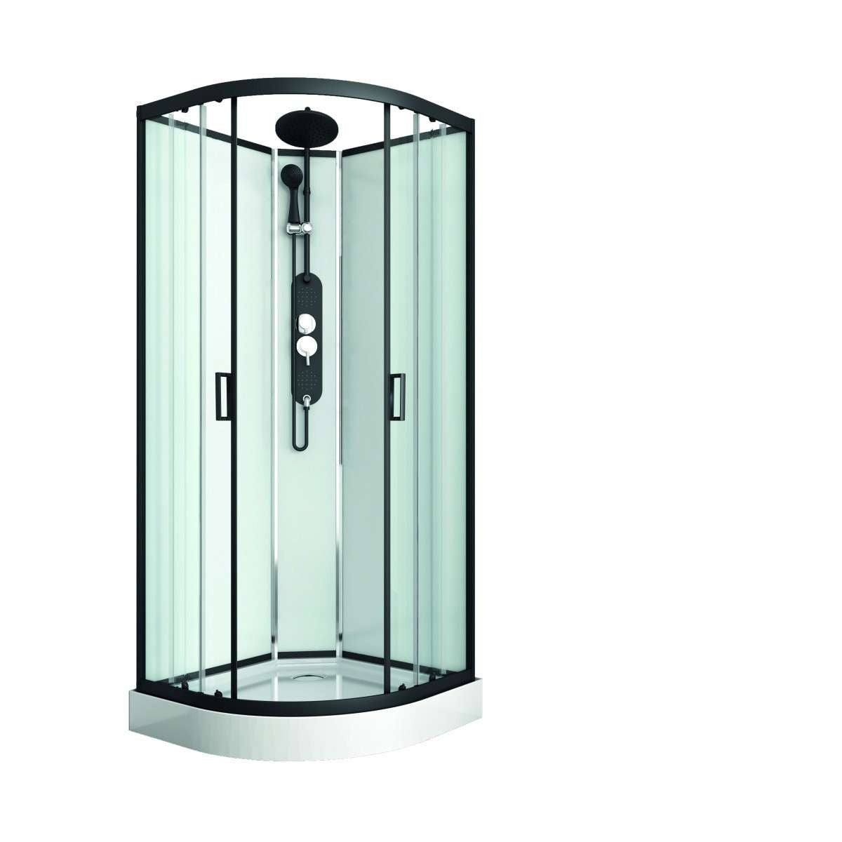 Die Rundduschkabine EPIC 1 beeindruckt durch den modernen Look aus schwarzen Aluminium Rahmen und dazu passende Armaturen. Sie ist bestens für ein Duscherlebnis im heimischen Badezimmer geeignet. Dank der 3-fach Einstellungen der Handbrause sowie den Massagedüsen wird das tägliche Pflege Ritual zum Erlebnis.