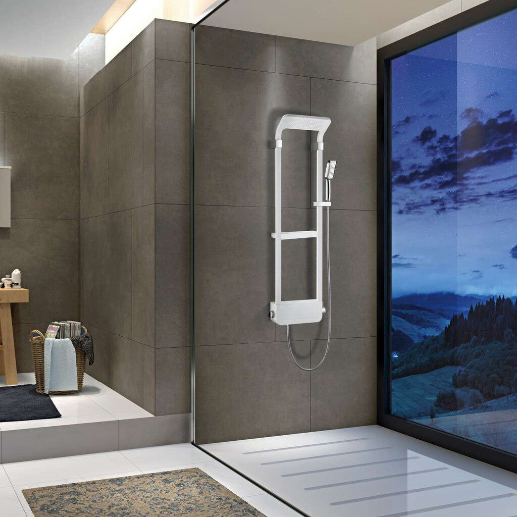 Dieses schöne Überkopfbrause Set überzeugt optisch und praktisch - mit diesem Set hast Du ein perfektes Duscherlebnis Dank der Überkopfbrause und der Handbrause mit Funktion. Die weiße Armatur verwandelt Dein Badezimmer in einen Blickfang.
